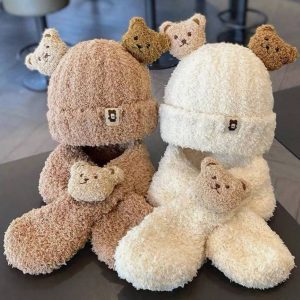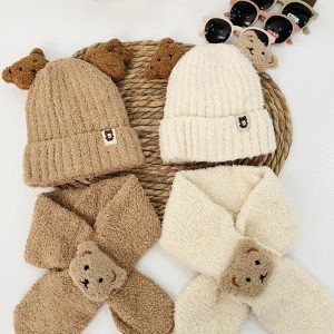 کلاه و شالگردن بوکله دکمه ای بچگانه